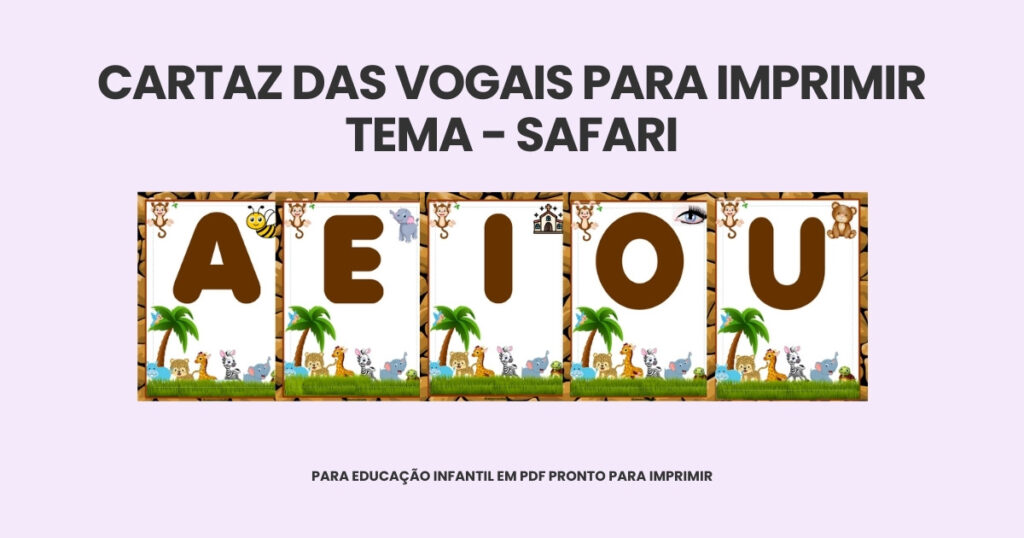 Cartaz Vogais Para Imprimir – Tema Safari https://youtu.be/74sldr-PYe8?si=hYSu8vGLdlvyx3ep Clique e garanta o seu material agora mesmo Os cartazes das vogais A, E, I, O e U apresentam ilustrações no tema Safari, favorecendo a atenção, o reconhecimento das letras e a associação visual. Material lúdico e colorido, desenvolvido para apoiar o processo de alfabetização na Educação […]