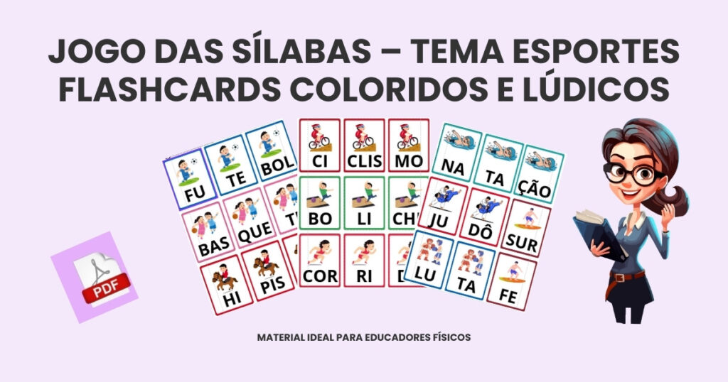 Jogo das Sílabas tema Esportes Flashcards Colorido e Lúdico