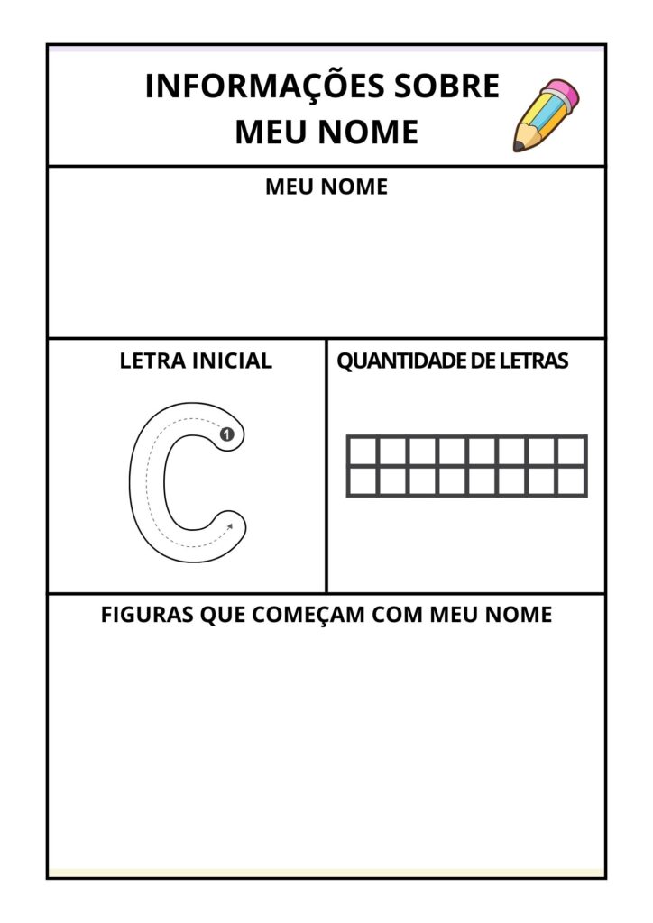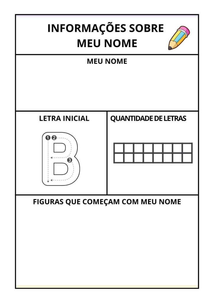 Olá, tem professor ai? Essa atividade foi pensada em você que trabalha na educação infantil e que procura uma atividade atrativa com todas as letras do alfabeto. Nessa atividade a criança aprenderá a letra do seu nome e as informações como, quantidades de letras, contagem da mesma e imagem associadas a primeira letra do nome. O material completo com 26 páginas em formato PDF e pronto para imprimir. Faça agora mesmo o seu pedido agora.