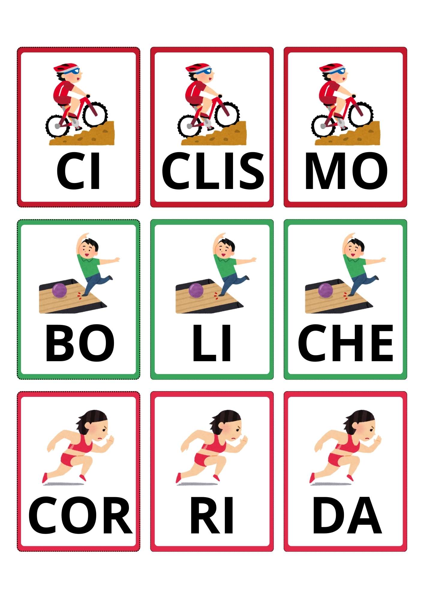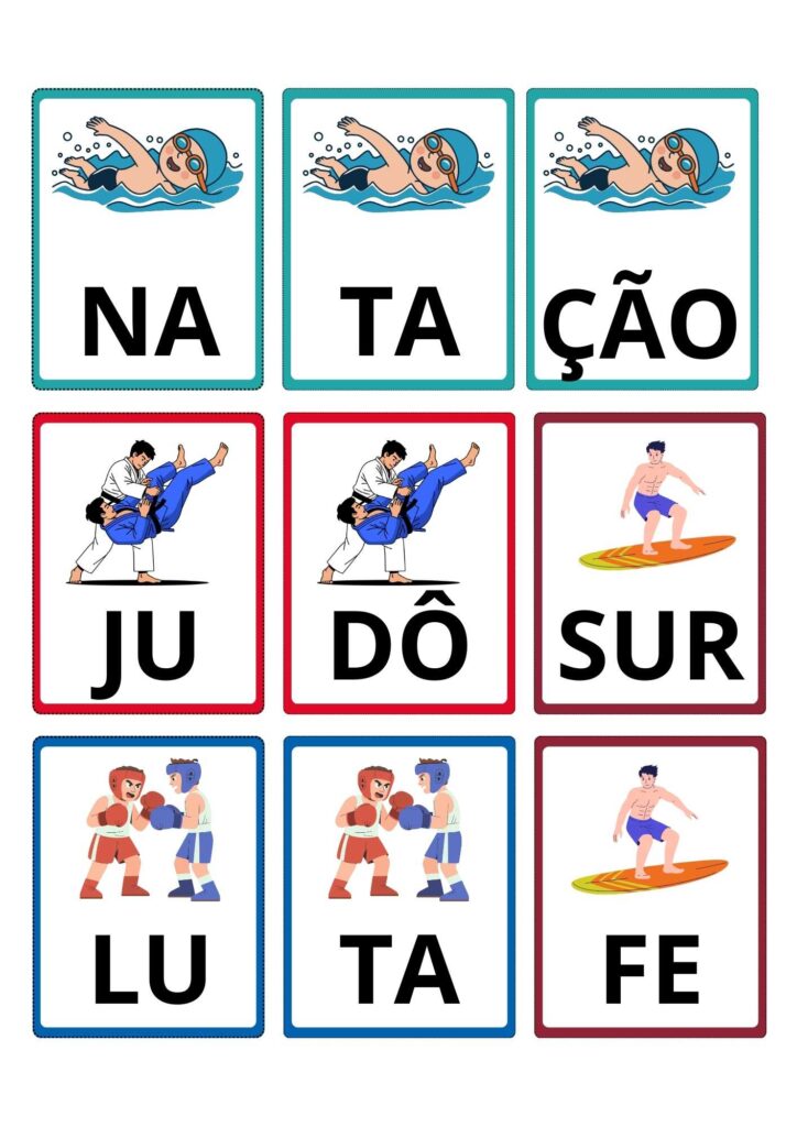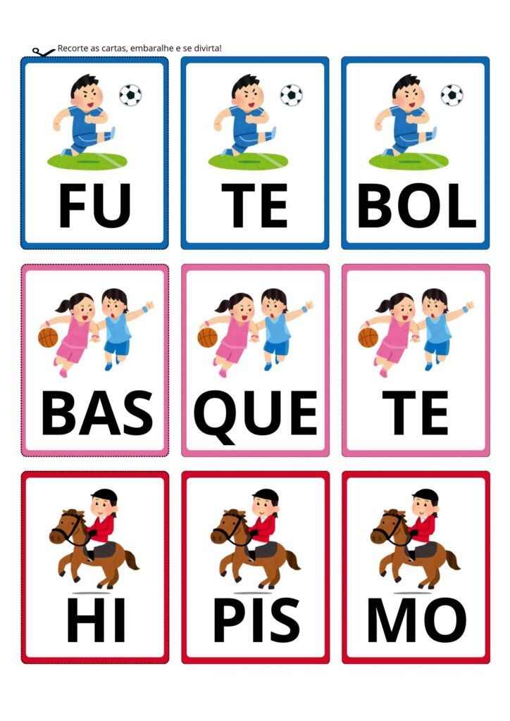 Jogo das Sílabas tema Esportes Flashcards Colorido e Lúdico